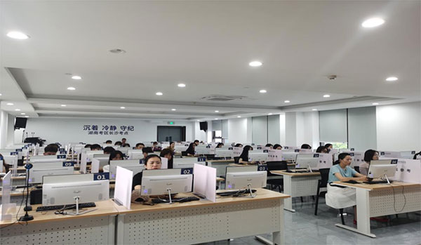 湖南省人力资源与社会保障厅职业技能鉴定中心何静怡主任一行莅临考点指导工作,对考场环境、设备运行情况及安保措施等方面进行了巡视检查。各考场考生严守纪律,全神贯注认真答题;考务工作人员坚守岗位,认真负责,为职业技能等级认定工作保驾护航。